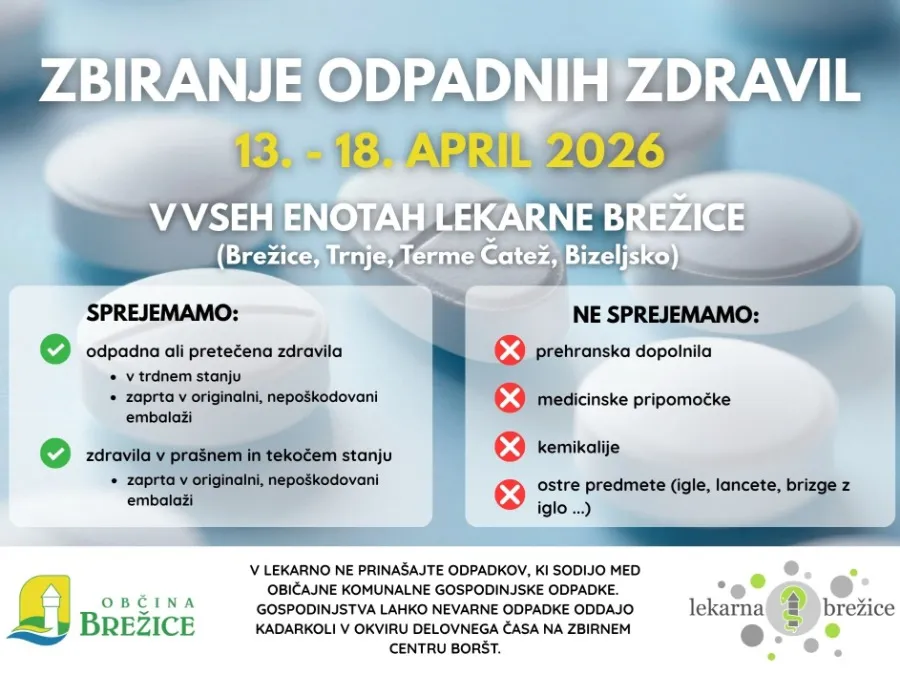V enotah Lekarne Brežice bo zbiranje še posebej okrepljeno v obdobju od 13. do 18. aprila 2026.