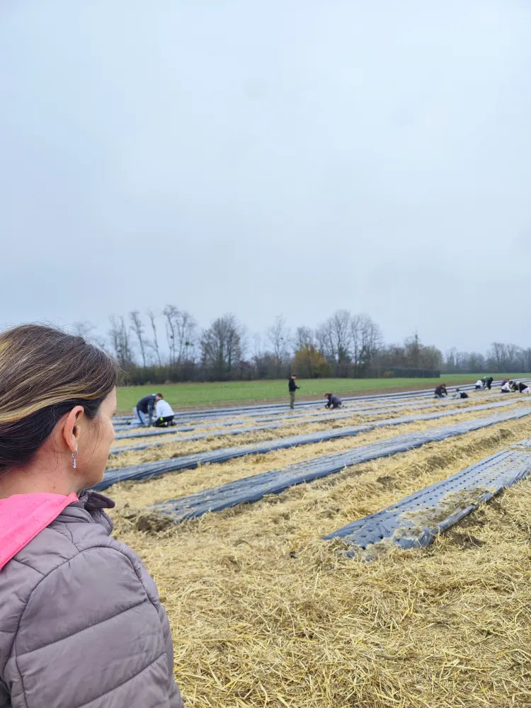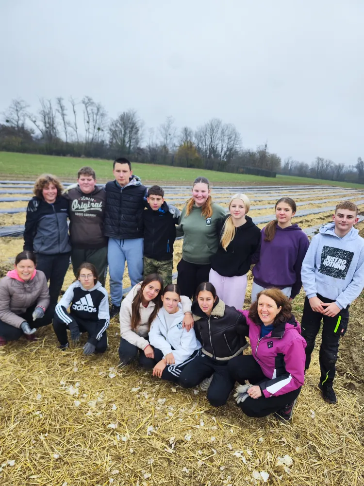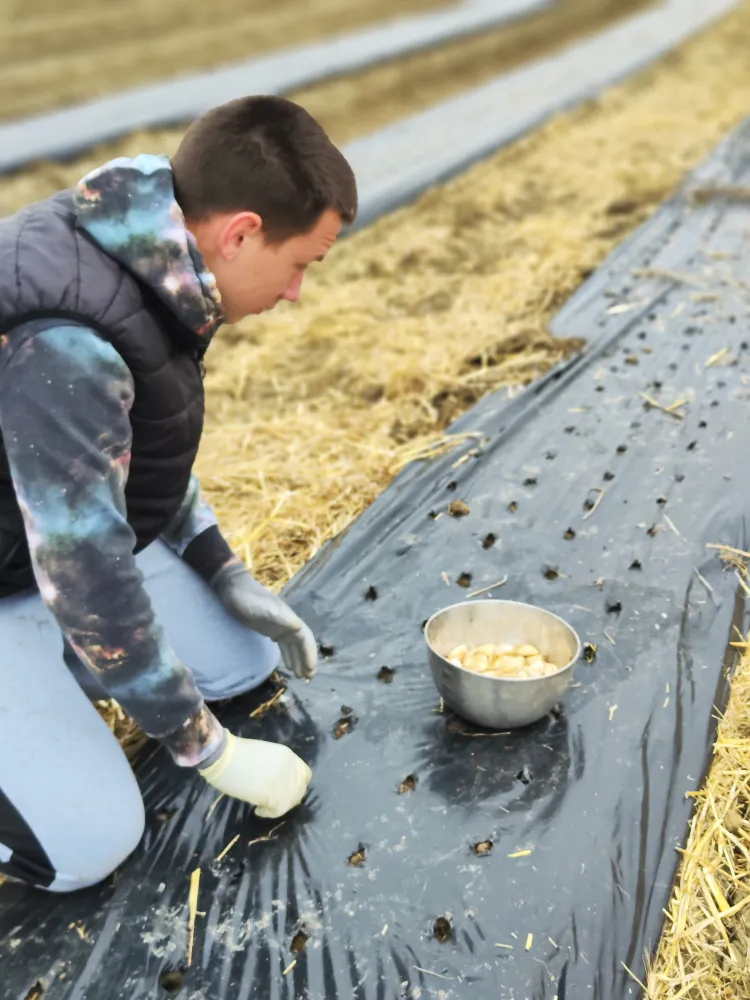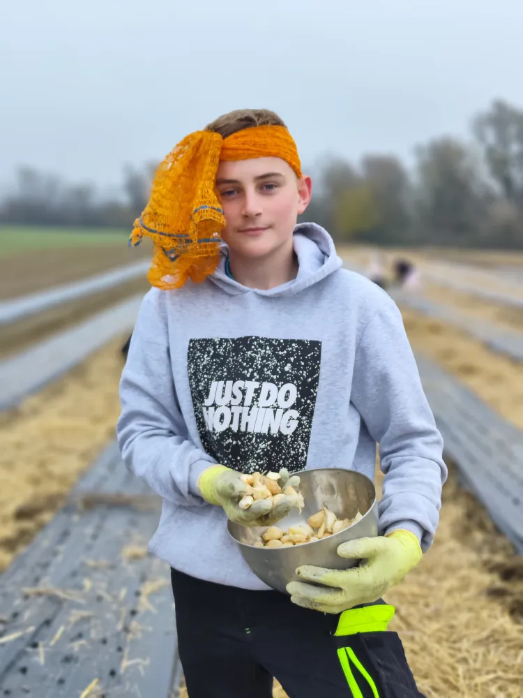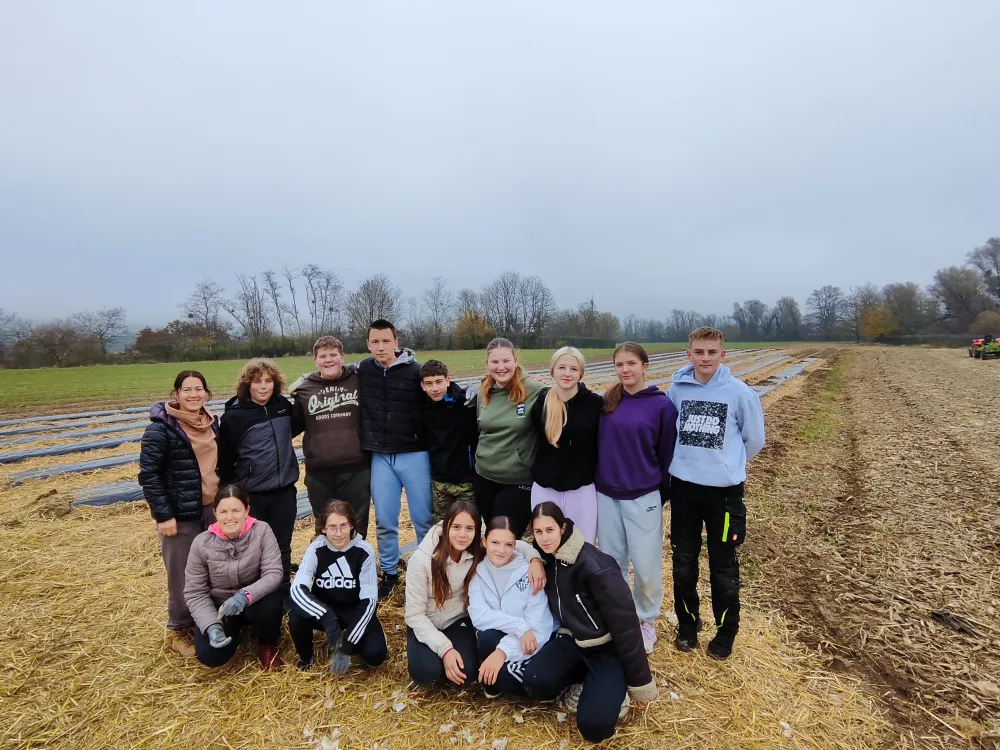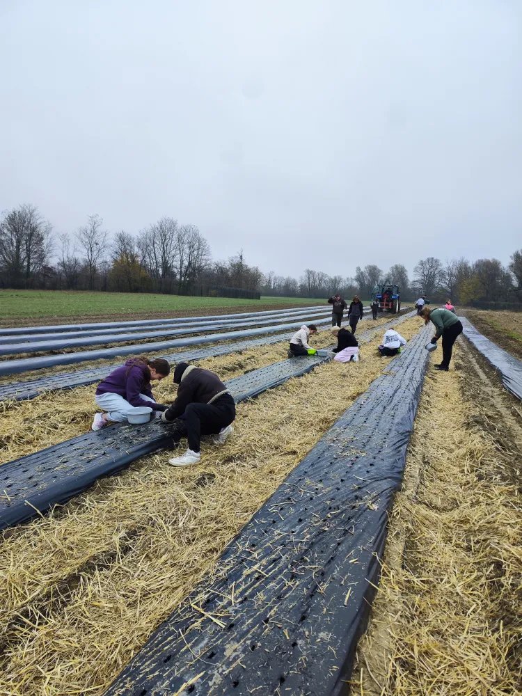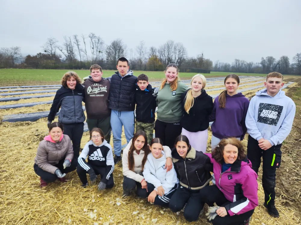 Devetošolci sadili česen na ekološki kmetiji Balon