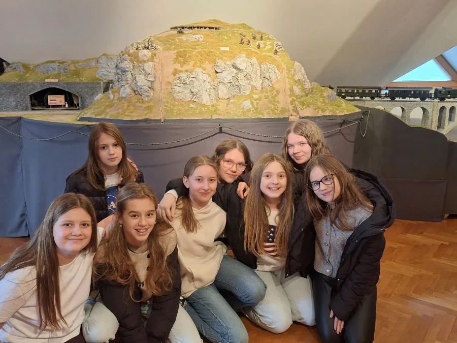 Danes, 5. 2. 2026, smo se z učenci tretje triade odpravili v Šenčur in na grad Brdo.V Šenčurju, mestu krompirja, smo si ogledali muzej Slovenija v malem. Potovali smo skozi čas in odkrivali velike zgodbe v majhnem svetu, ki jih pripovedujejo detajli v razstavljenih maketah in dioramah, kjer so prikazani: evolucija človeka, življenje mamutov, Ivan Cankar, France Prešeren, bolnišnica Franja, koncentracijsko taborišče Ljubelj, postavitev Aljaževega stolpa na vrhu Triglava, Solkanski viadukt, dogodki iz prve svetovne vojne na soškem območju, ključni dogodki med obema vojnama ter v povojnem obdobju in razglasitev samostojnosti Slovenije.