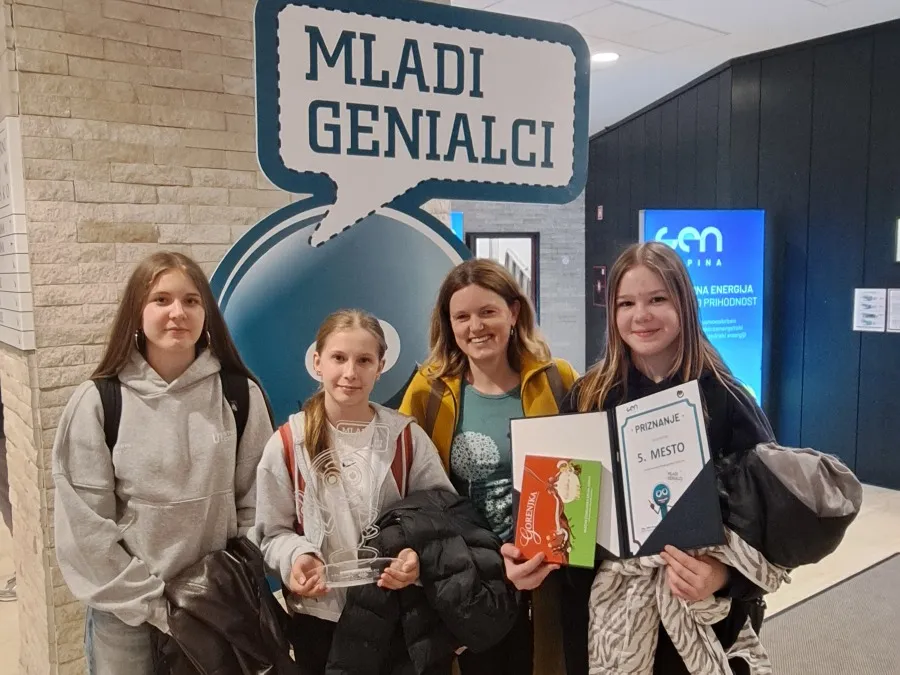 V torek, 14. 4. 2026, so se tri učenke naše šole udeležile zaključnega kviza Mladi genialci, ki je potekal v KD Krško. Na tekmovanju so sodelovale Nina Kostanjšek, Miriam Škof iz 8. razreda in Lucija Valenčak iz 9. razreda.Vsebina tekmovanja povezuje znanje iz energetike, fizike, kemije in tudi geografije. Na tekmovanje smo se začeli pripravljati že v mesecu januarju, ko smo v Svetu energije v Krškem sodelovali v različnih delavnicah na katere so nas povabili. Na temo energijskih virov smo izvedli tudi naravoslovni dan na naši šoli.